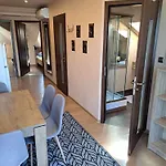 Dispone de comodidades como una plancha y tabla de planchar, climatizador, TV con canales por satélite y TV de pantalla plana con canales vía satélite en un balcón y una zona de comedor para la máxima comodidad de los huéspedes. El apartamento destaca por ofrecer comodidades como secador de pelo en el baño. También encontrarás un inodoro separado de la ducha y una ducha.